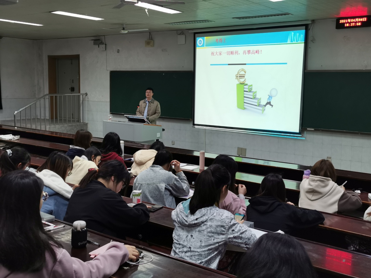 4月6日下午,审计处党支部党员欧定余处长在经管楼一阶梯教室为商学院2018级经济类专业的学生举行了一场考研动员与指导大会。欧定余处长是商学院硕士研究生和博士研究生导师,曾在商学院任党委副书记、分管研究生的副院长,对考研工作非常熟悉,经验丰富。