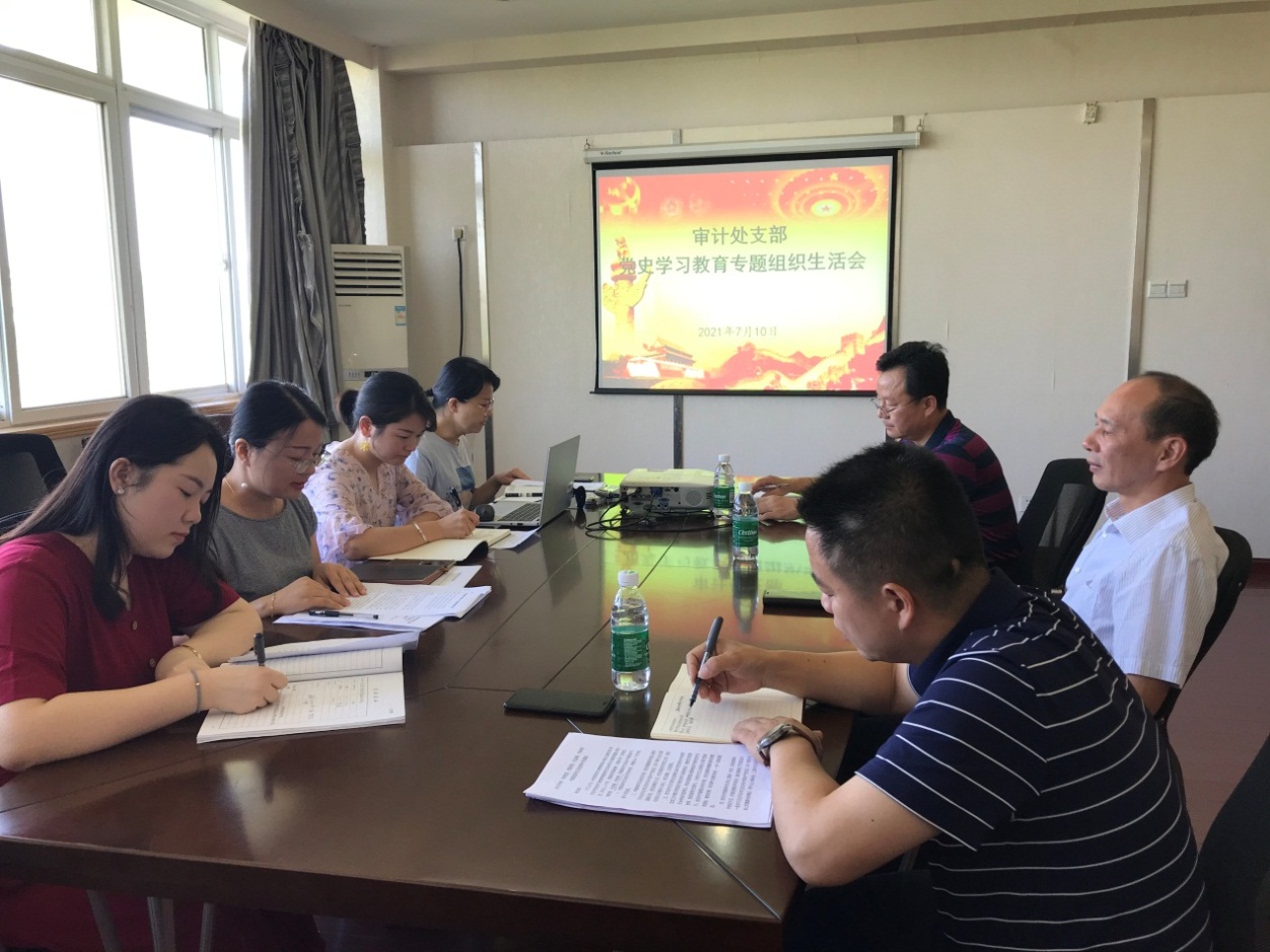 7月10日,审计处党支部召开党史学习教育专题组织生活会,周旭枚同志汇报了支部党史学习教育情况及检视问题,支部所有党员结合自身学习工作情况作了发言,机关党委委员陶永峰同志到会指导。